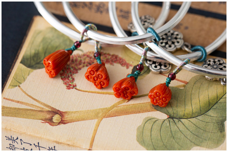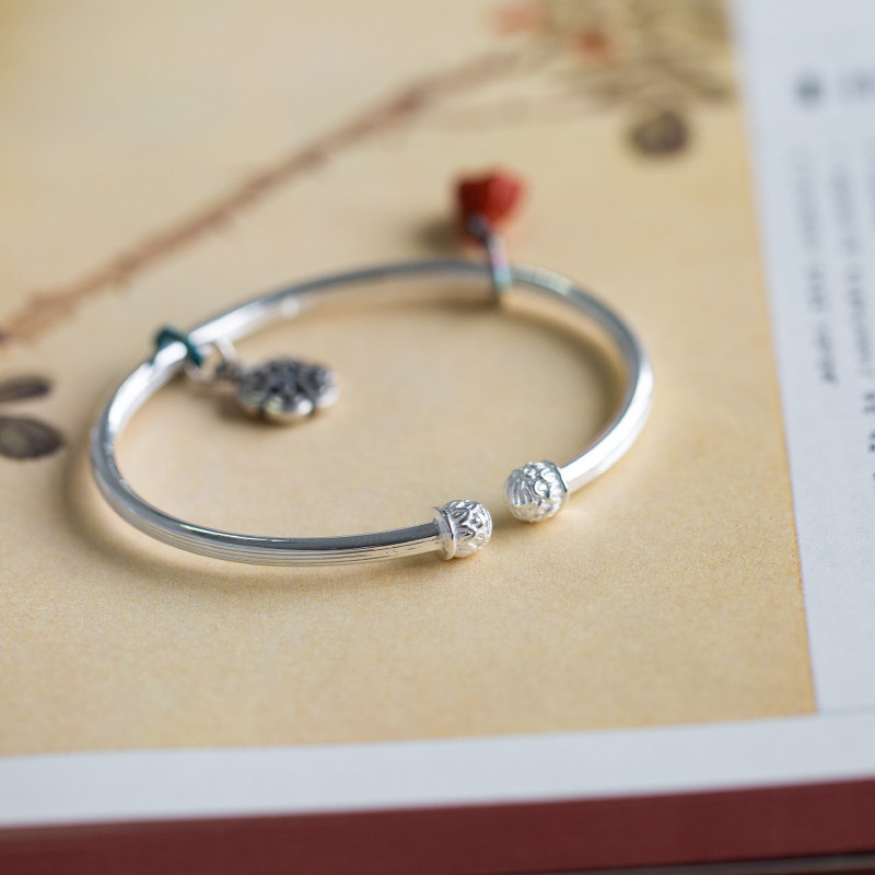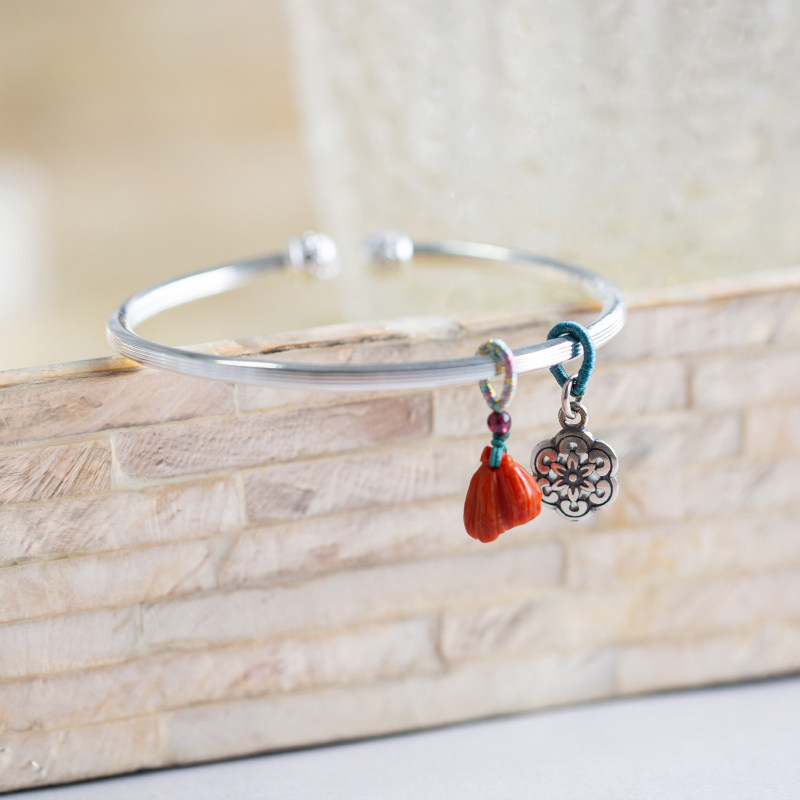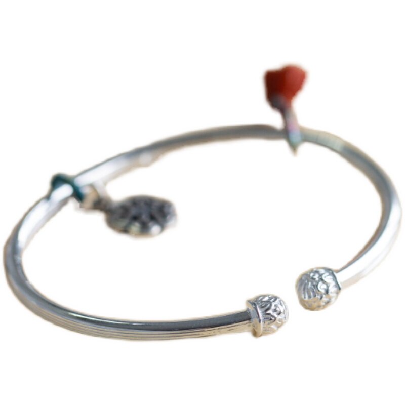 A grain of red dust 999 foot silver lotus fu character Wasi easywork South red pendant with opening bracelet