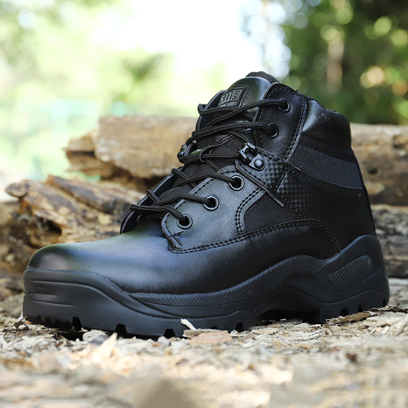 Black military fans combat training boots men's boots security low side zipper spring and autumn waterproof non-slip tactical shock absorption hiking shoes