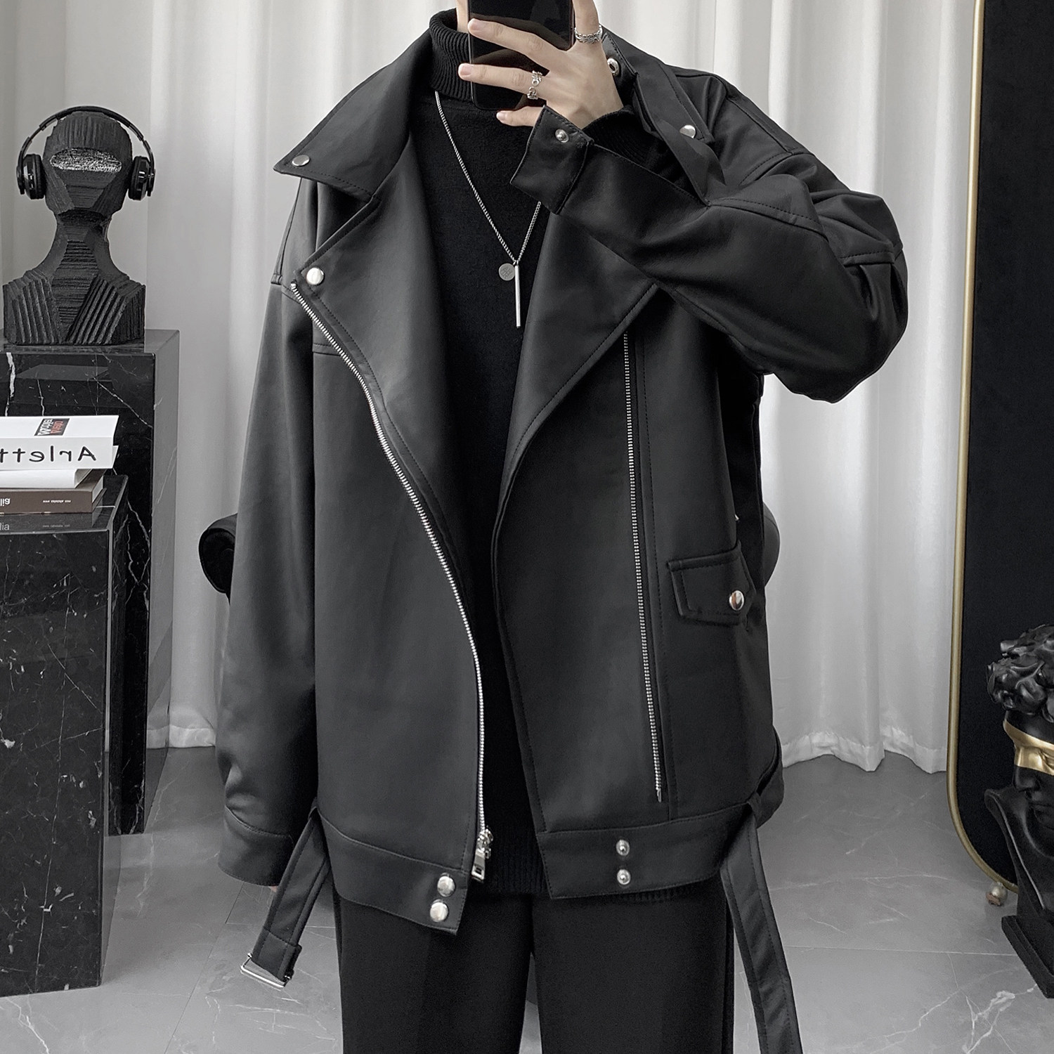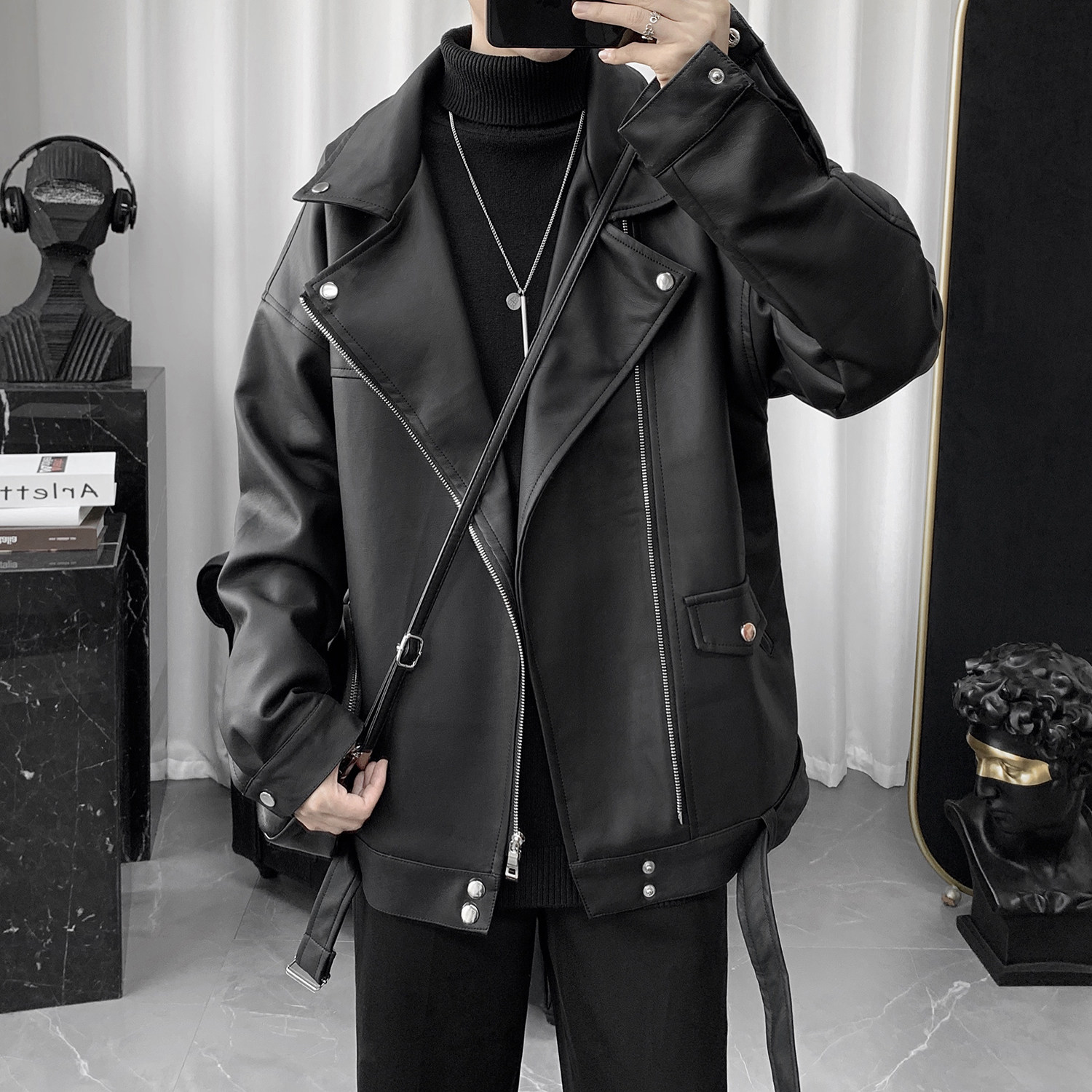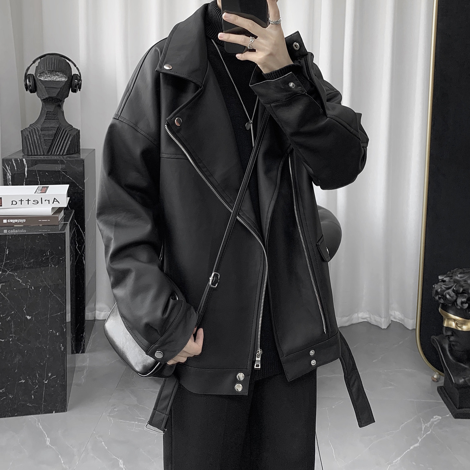 2022 spring new handsome motorcycle leather jacket men's trend all-match design sense niche jacket jacket men spring and autumn