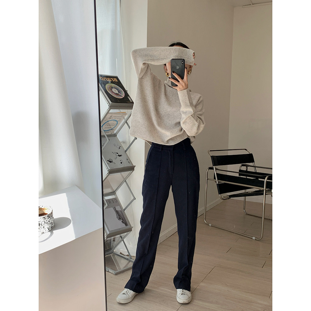 MUCCHIC more than 2m leg length autumn and winter god pants wool high waist side slit straight suit pants mopping pants