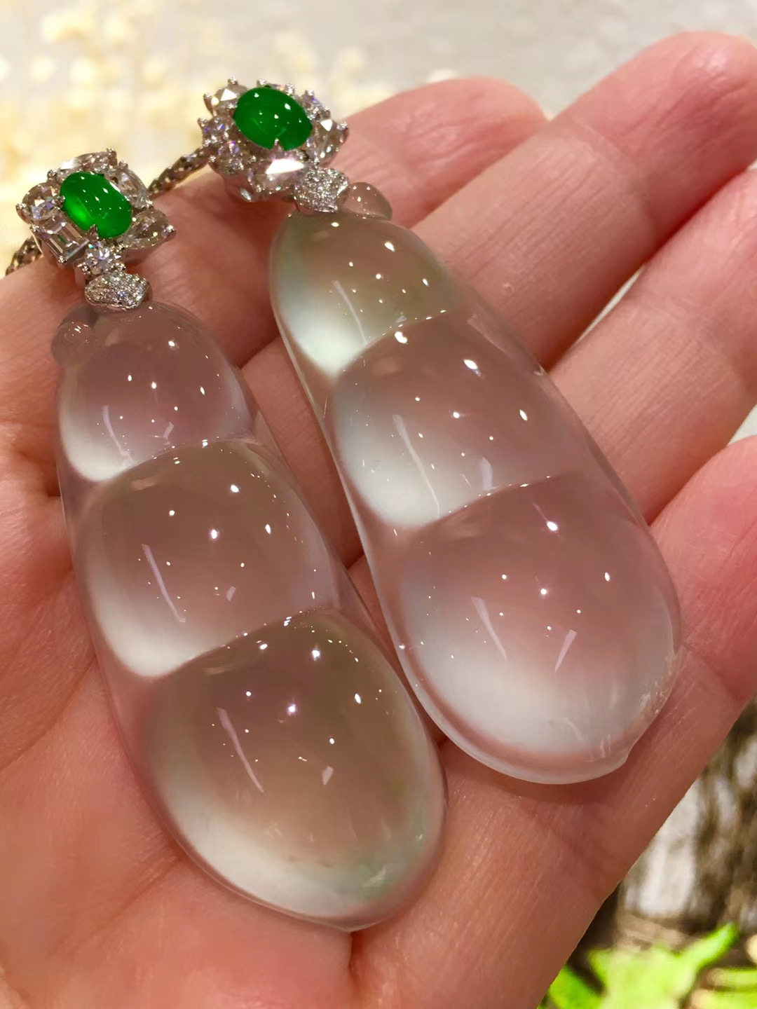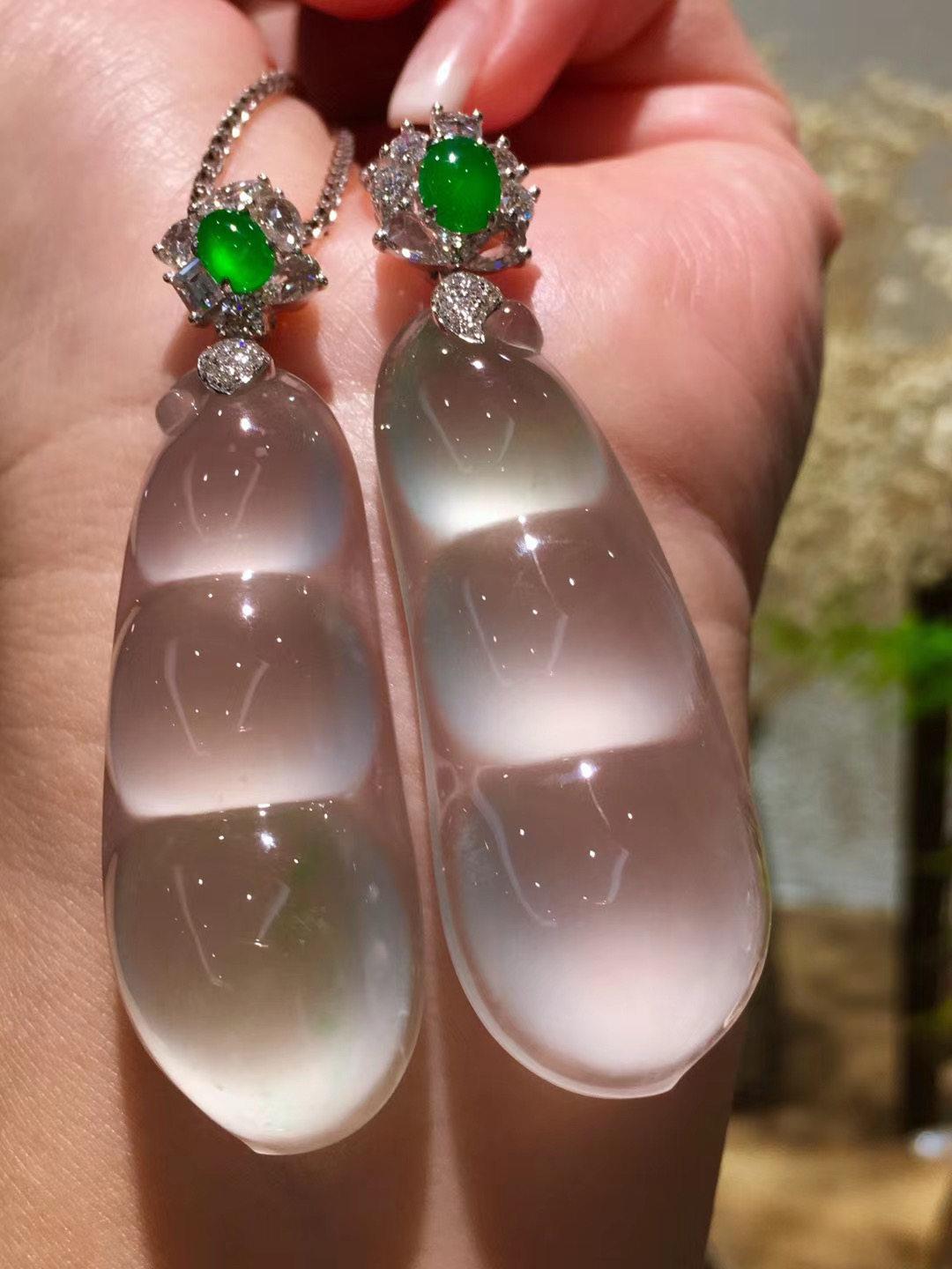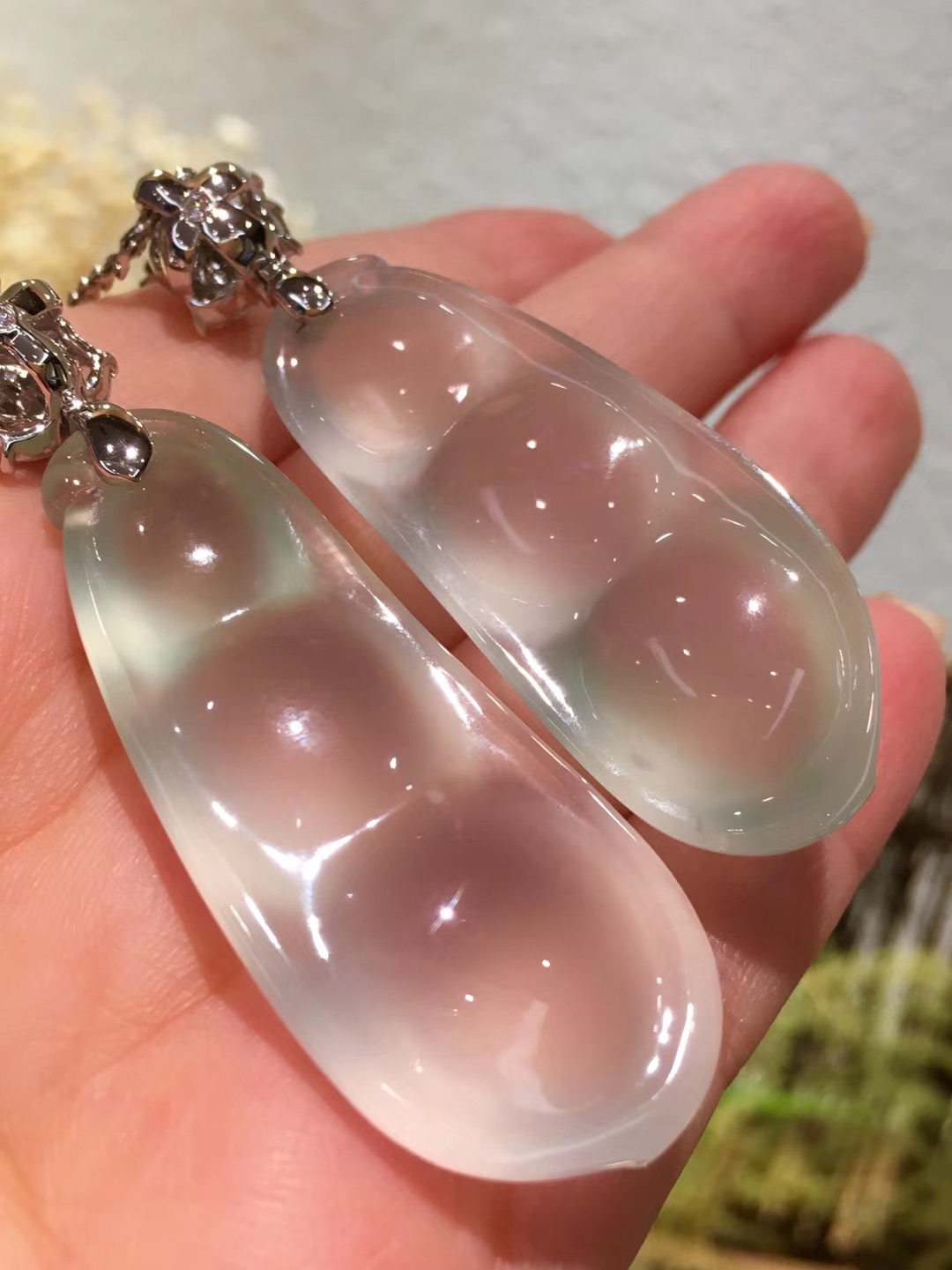 Natural high ice species ice permeable jade Lucky bean pendant Myanmar a goods 18k gold inlaid green bean jade pendant female