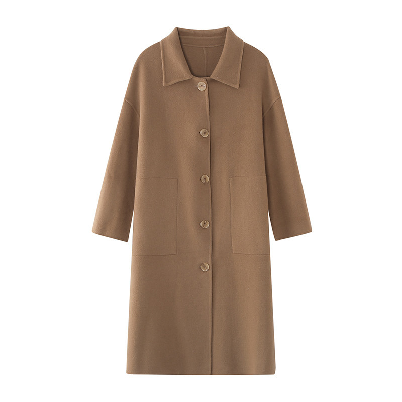 Hump-turned neckline with large pockets bifacial, great clothes design feeling small and Korean version loose high-end wool coat autumn and winter