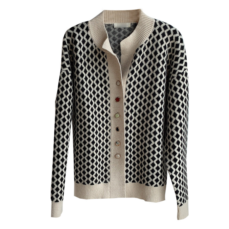 Sandro Tonali2020 autumn and winter new sweater trendy loose rhombus knitted cardigan small fragrant wind jacket women