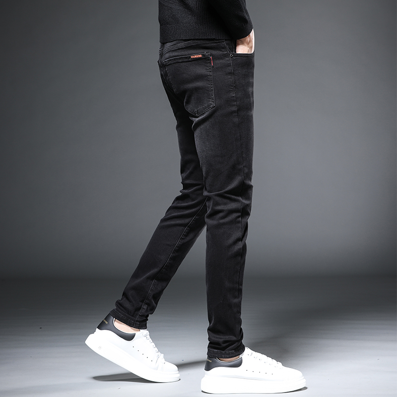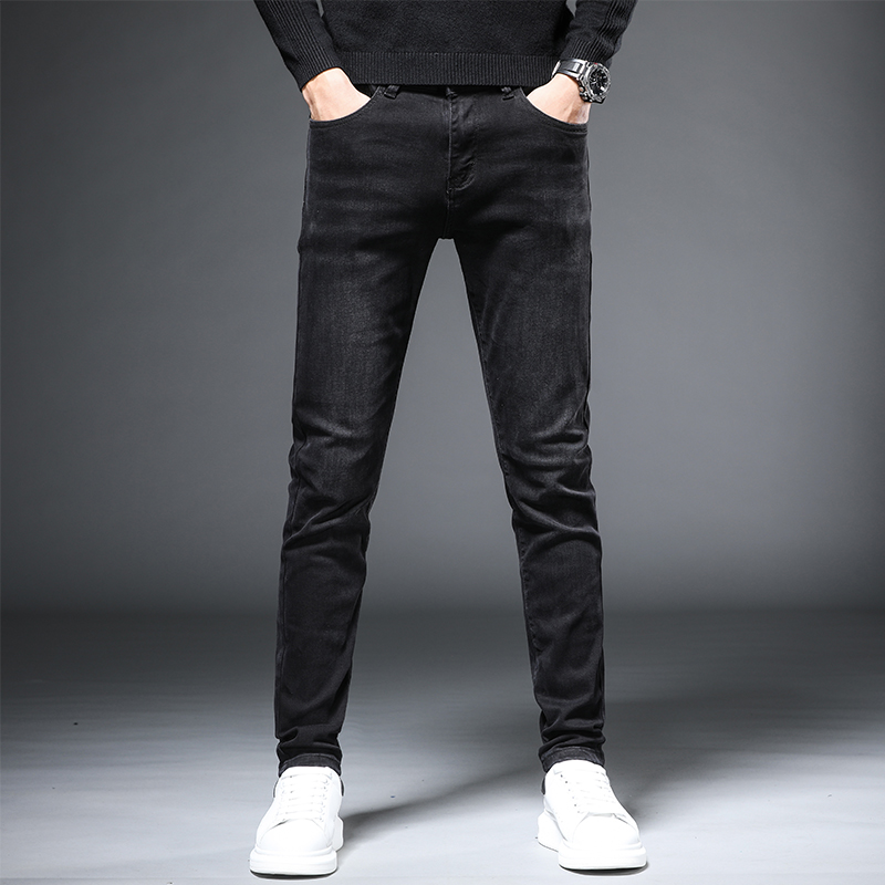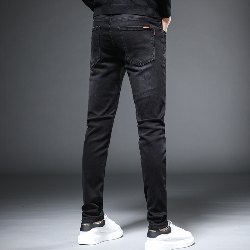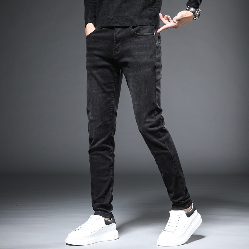 Hong Kong high-end jeans men's tide brand autumn and winter models slim small feet men's Korean version of elastic casual long pants men's clothing