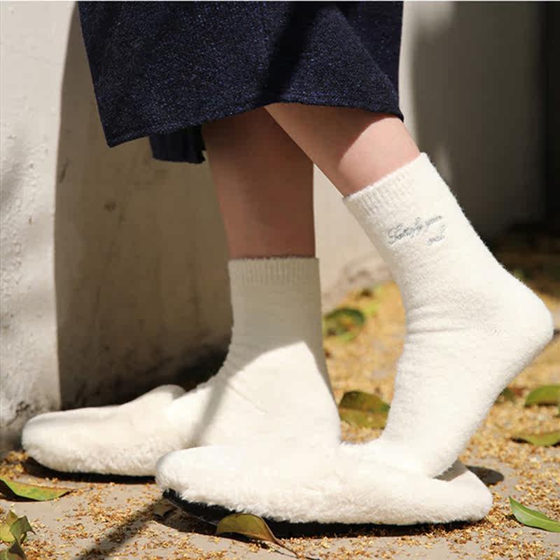 Stepping on the clouds ~ soft and cute autumn and winter warm grinding imitation mink socks Japanese girl home floor socks