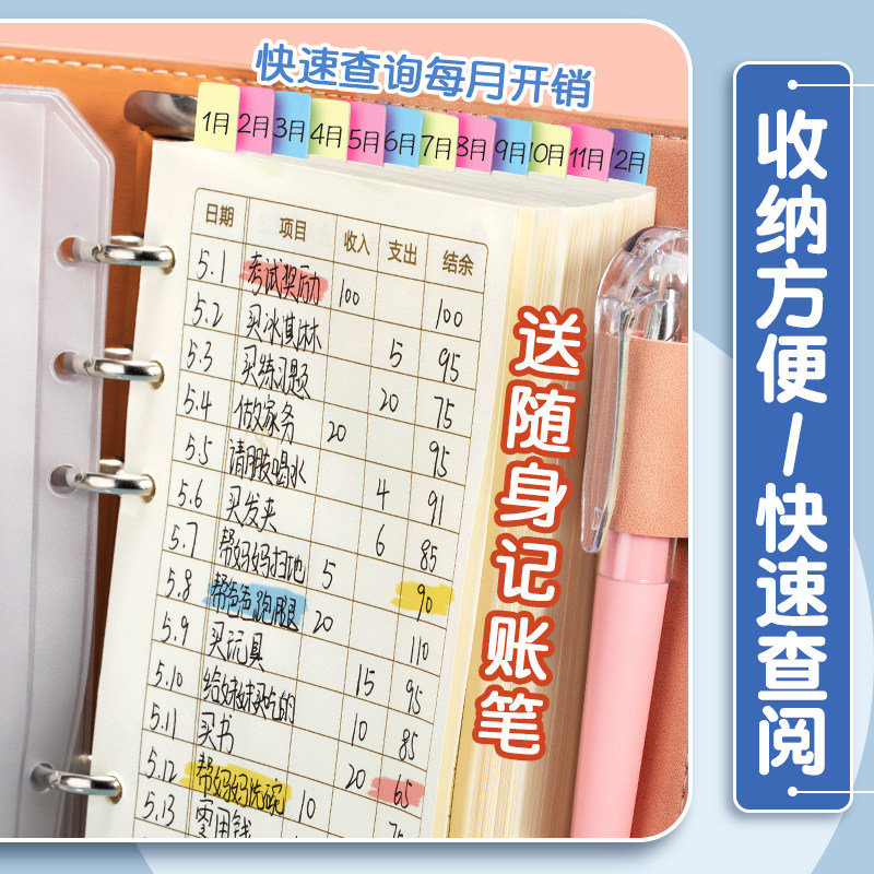 Bookkeeping small children's detailed account hand account multi-functional cash diary account book family financial management notebook storage account book life running water account book multi-functional home loose-leaf cute card money