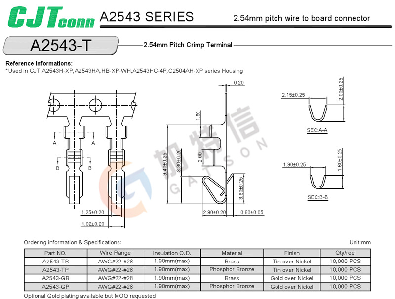A2543-TB CJT Yangtze River connector original crimp terminal spacing P=2.54MM