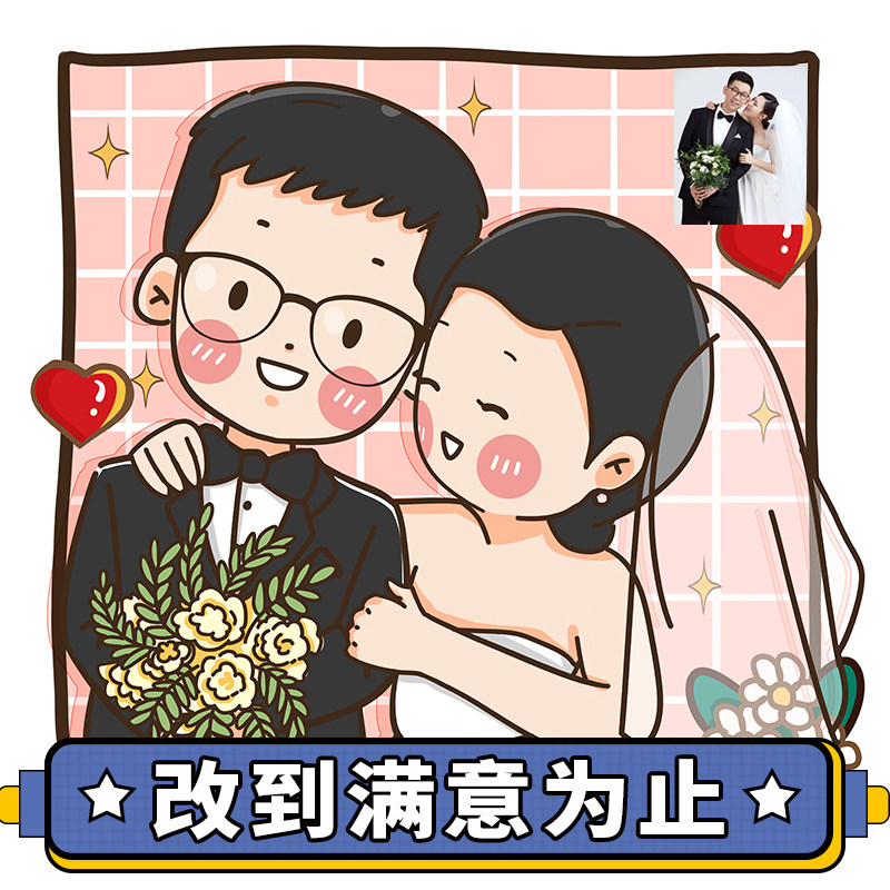 Real people turn hand-painted avatar half-body two-dimensional cartoon funny cartoon couple wedding decoration painting gift