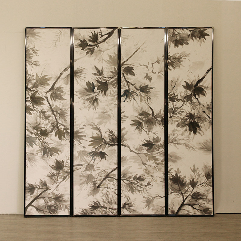 Chinese maple leaf effect custom screen Living room background wall partition Bedroom office Hotel folding mobile screen