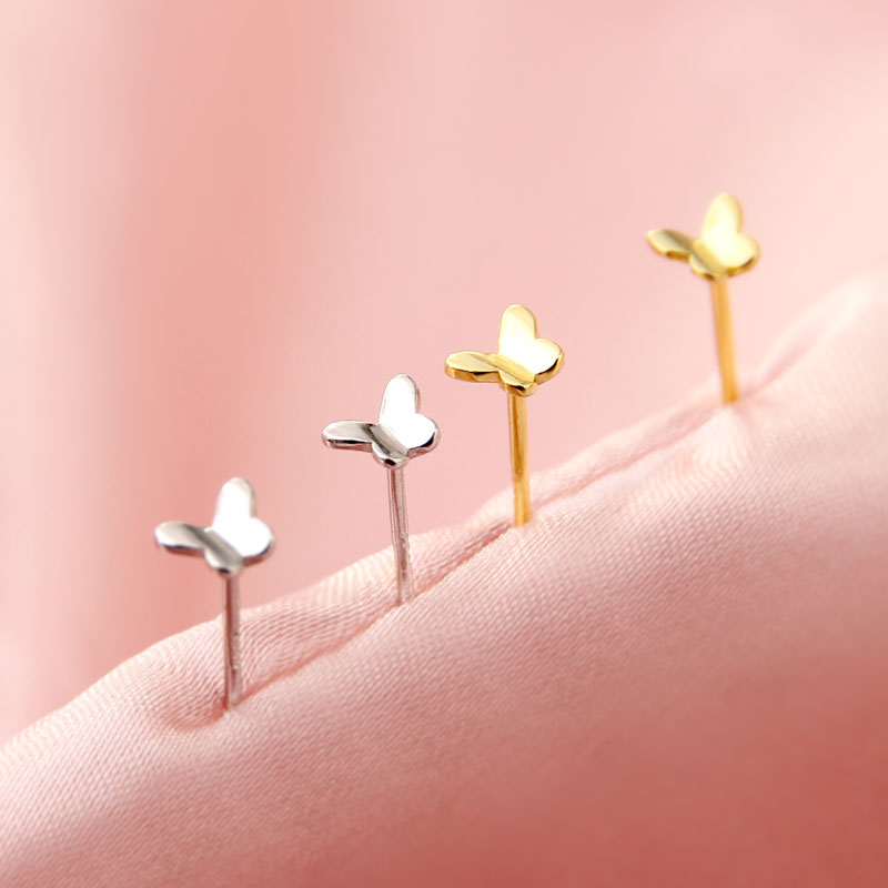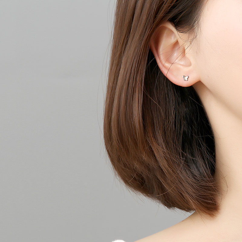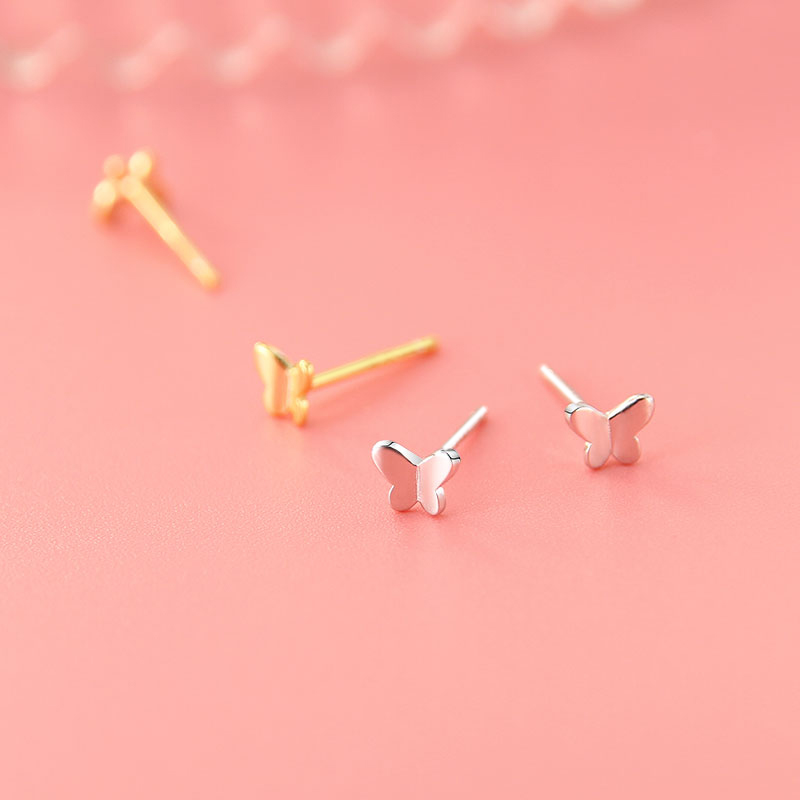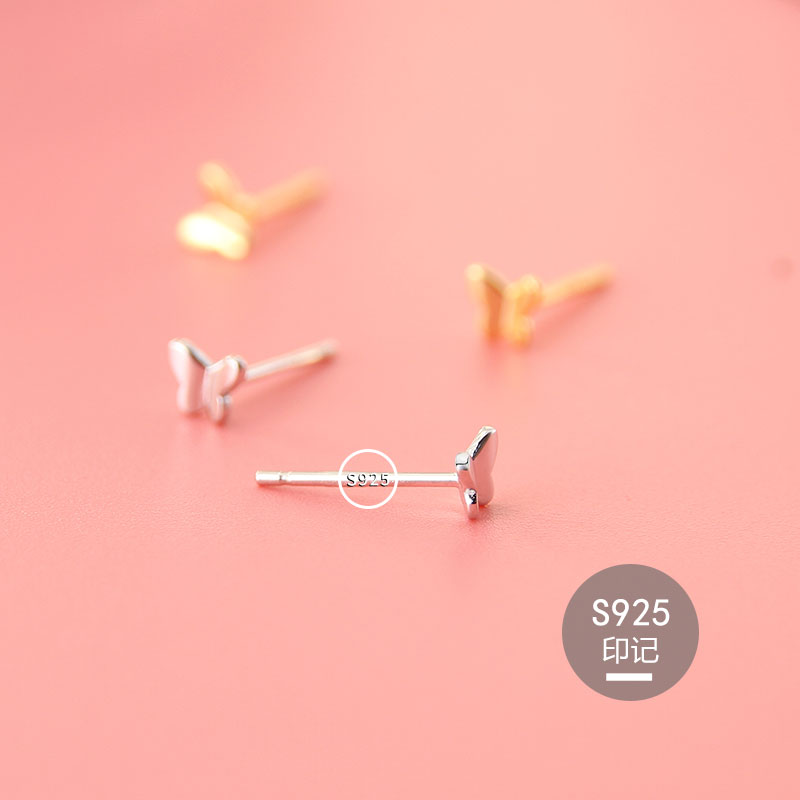 Exquisite butterfly ear studs female sterling silver ins simple Japanese style small mini ear studs sleep free from picking ear holes