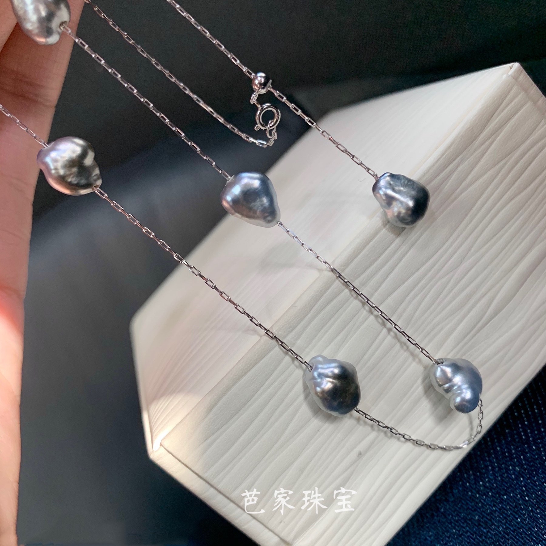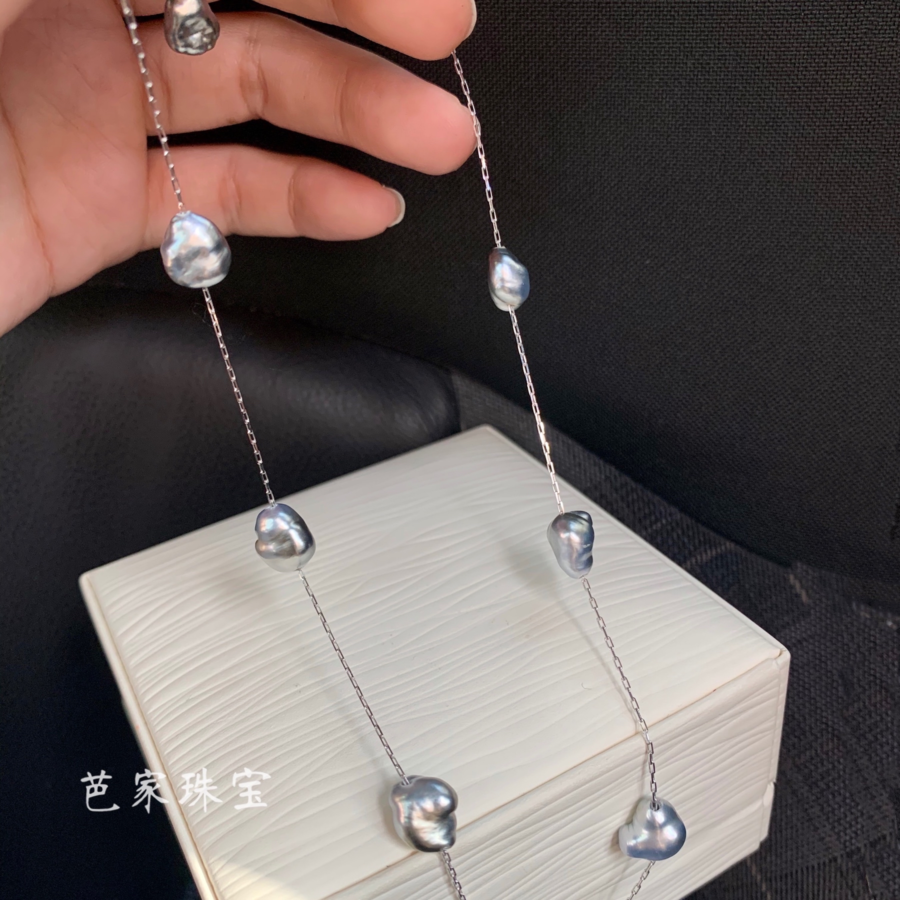 Special Ballet Limited Keshi Natural Wild Tahiti Seawater Black Pearl 18K Gold Full of Star Necklace Adjustable