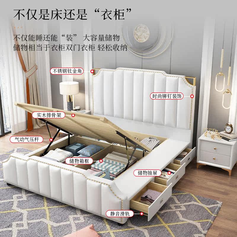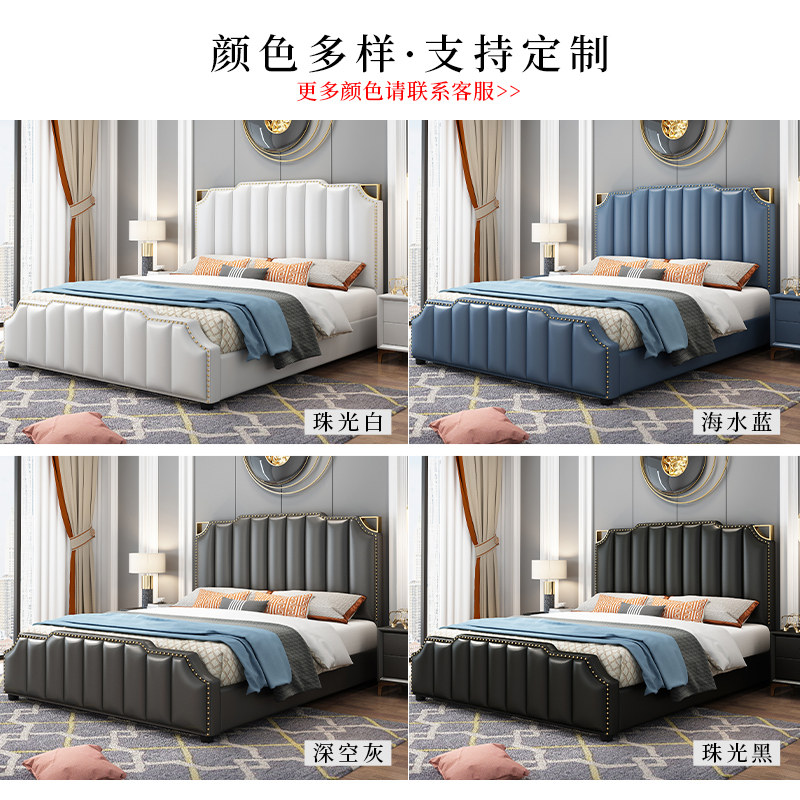 Light luxury bed modern simple 1 8 m double bed master bedroom wedding bed net red bed soft bed storage bed real leather bed