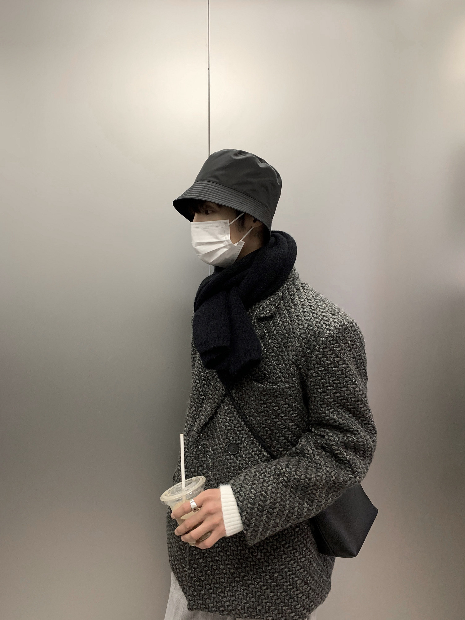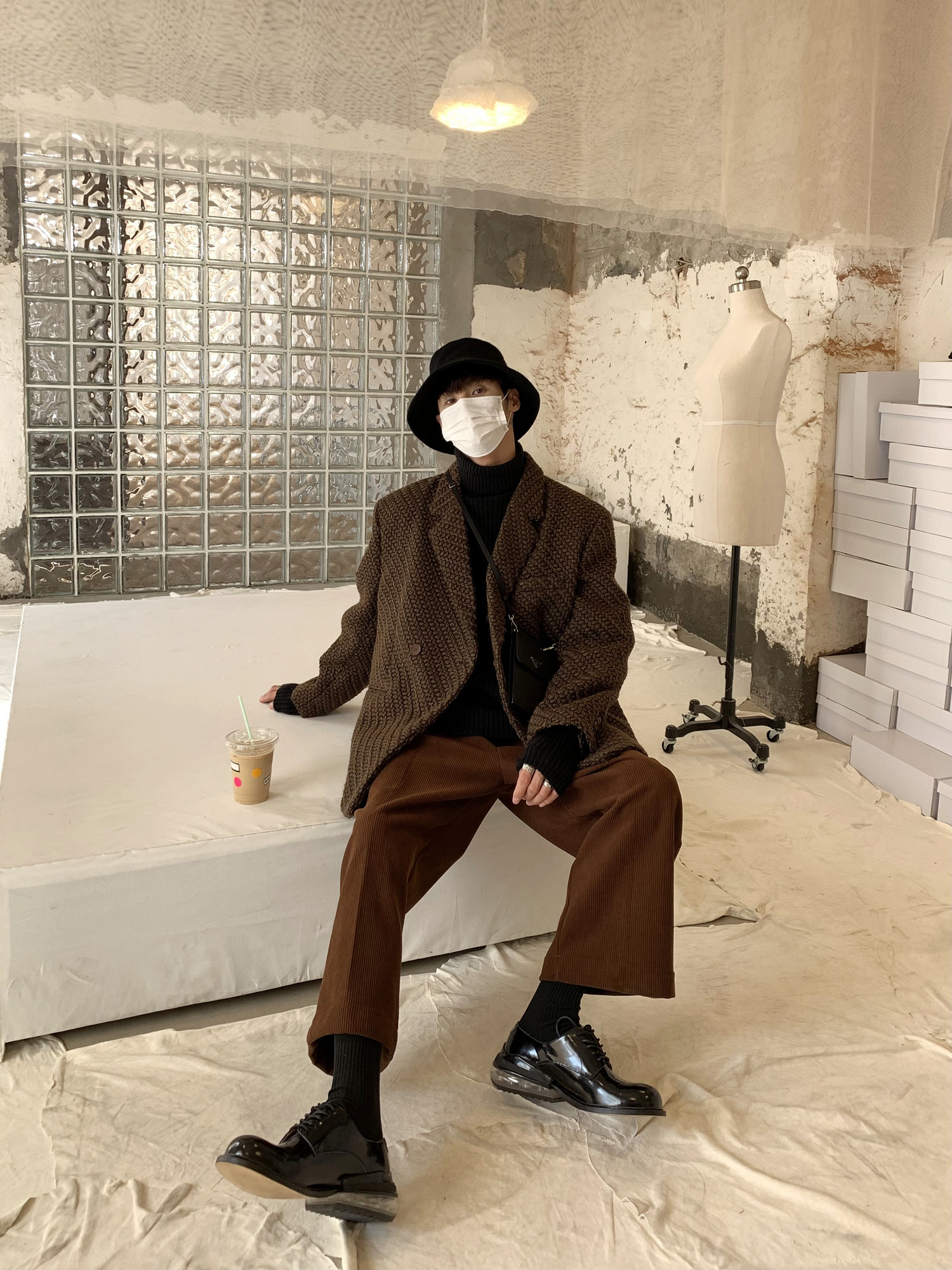 HOZI Special braided fabric retro casual Western suit jacket men's 2021 Winter Korean version of the net red suit