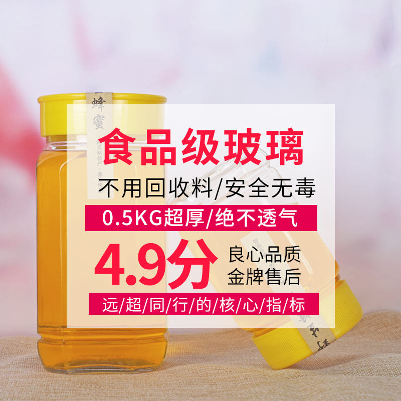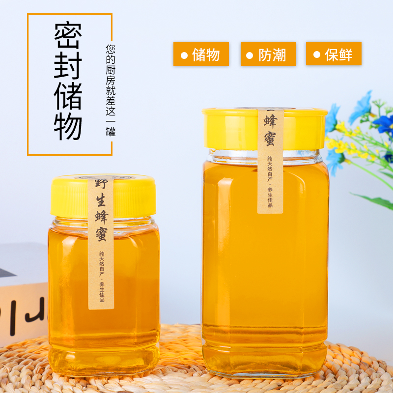 Thickened octagonal honey bottle high-grade sealed glass bottle 1 kg 2 kg jam jar storage with lid dedicated
