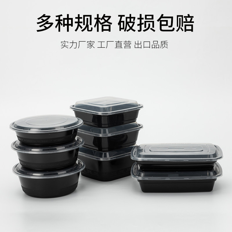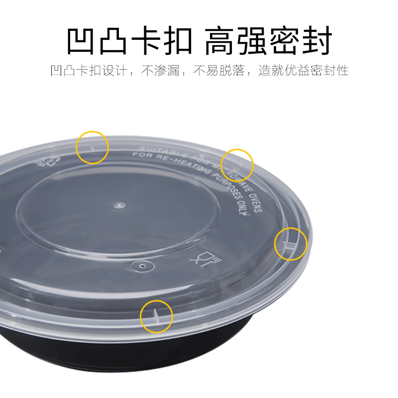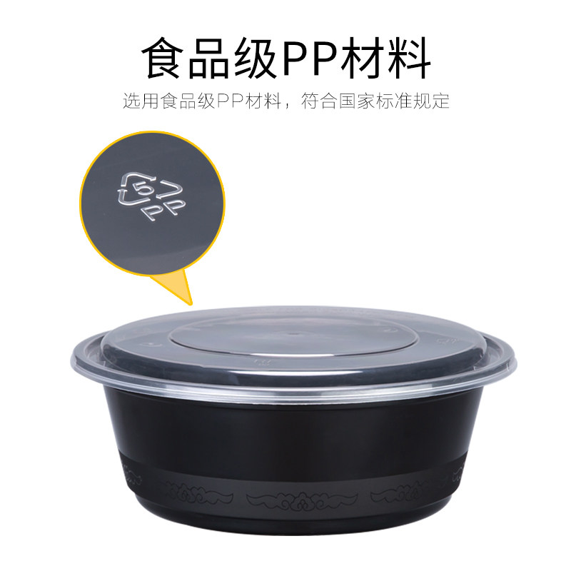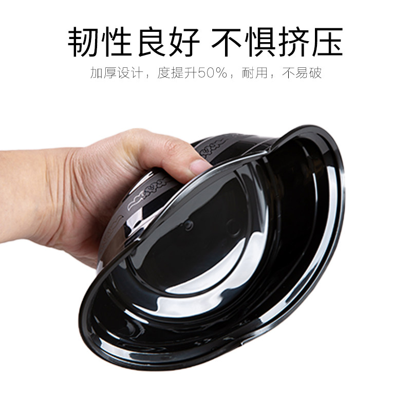 American disposable lunch box 600ML round black high-end delivery packaging box plastic fast food lunch box packaging bowl