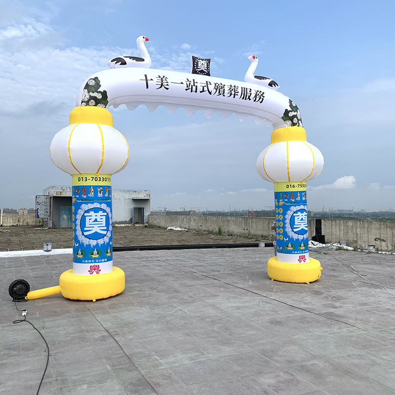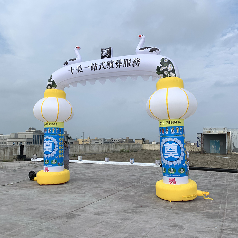New inflatable white things arch air model funeral rainbow gate funeral memorial arch funeral painting spirit shed 6 meters 8 meters custom night