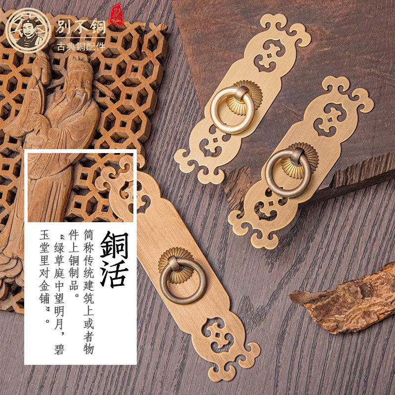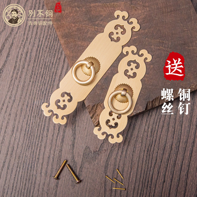 Chinese Furniture Pure Brass Vintage Vertical Doors And Windows Shoes Cabinet Brass Handle Wardrobe Drawers Retro full copper solid pull buckle