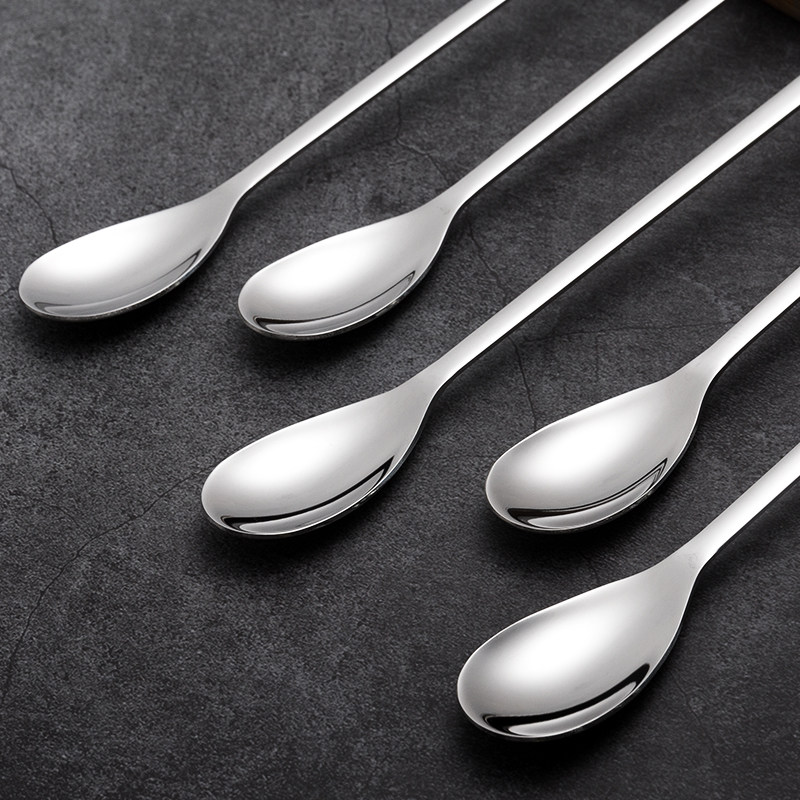 Long handle spoon 304 stainless steel long coffee stirring spoon thickened delicate dessert milk tea baby spoon seasoning spoon