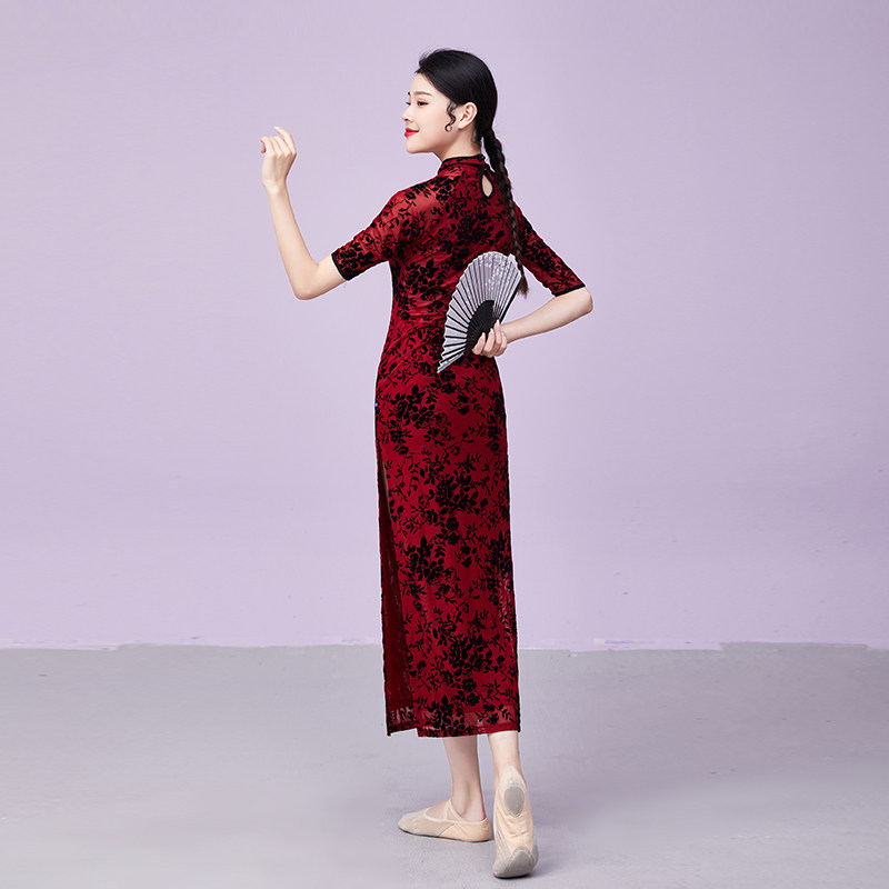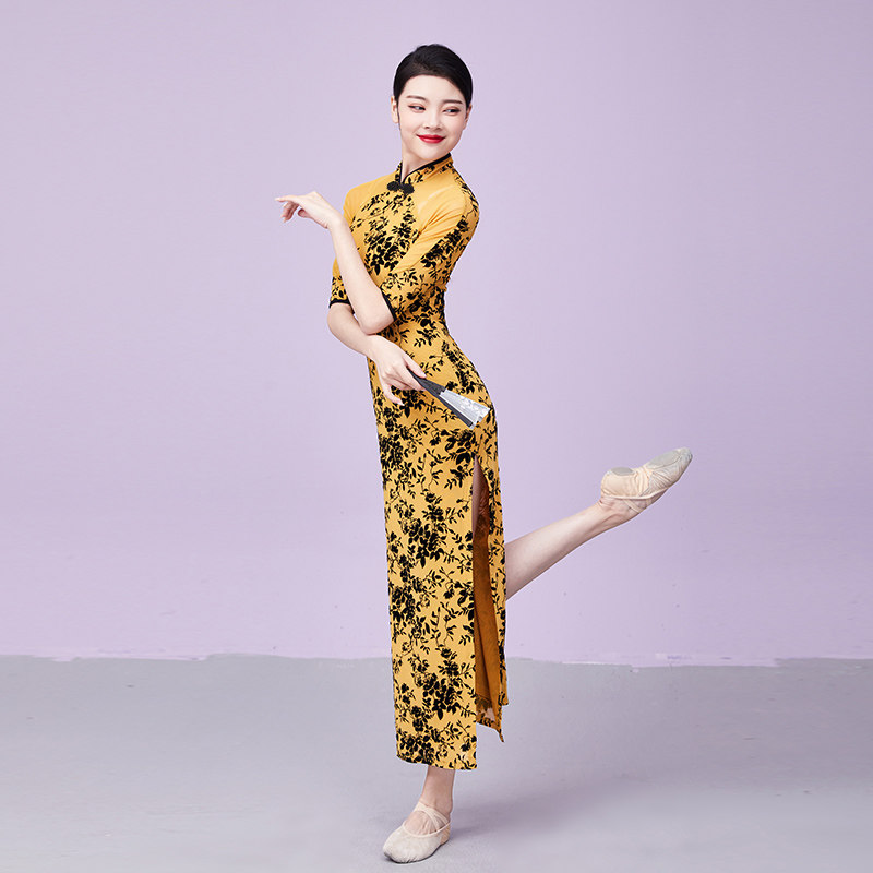 Cardamom Yiyuan classical dance slimming practice clothes adult female Chinese style body rhyme split cheongsam national dance costumes
