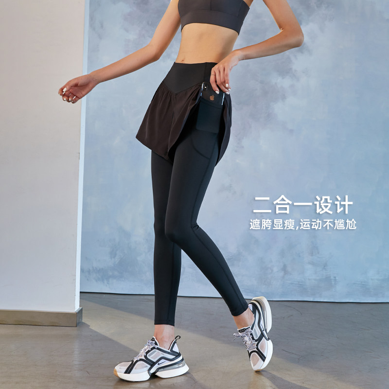 Runaway Lolita fake two-piece sweatpants female hip leggings Quick-drying running fitness pants training yoga pants winter