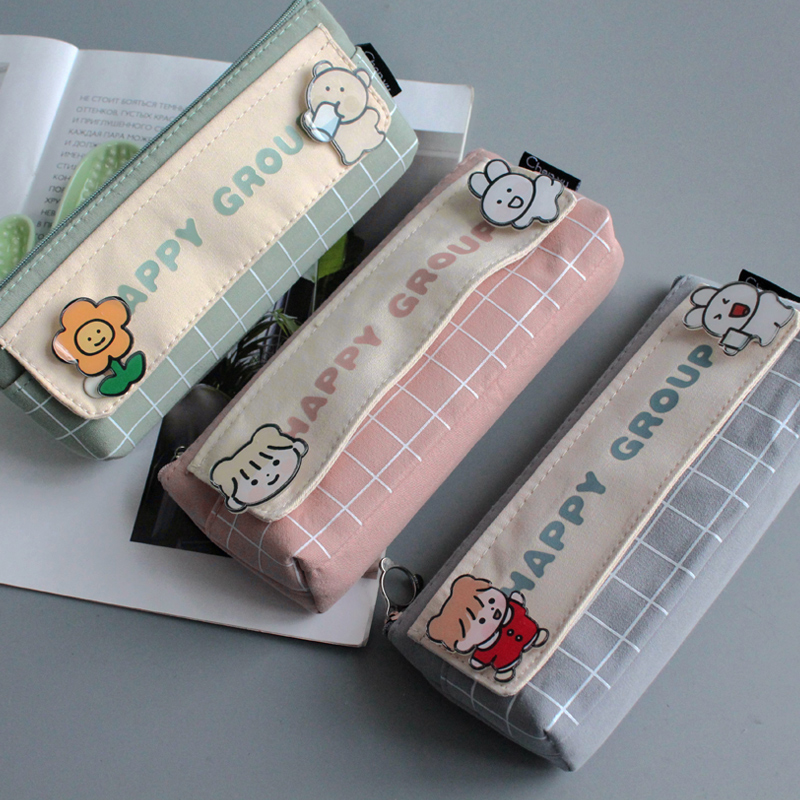 Send 2 brooches, cute, large-capacity, Korean-style pencil bag, ins, Japanese simple girls' stationery bag, college students' primary school students' stationery box, junior high school students' male pencil box, high school students' pencil bag, net red school supplies