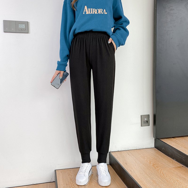 Corduroy pants women's spring and autumn and winter loose casual thin wild velvet 2021 new sports drawstring pants