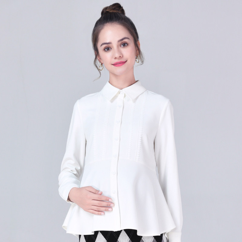 Pregnancy Woman Dress Spring Autumn Season Pregnant Woman Shirt Woman White Long Sleeve Blouse Career Work Interview Tooling Thickened Shirt Tide