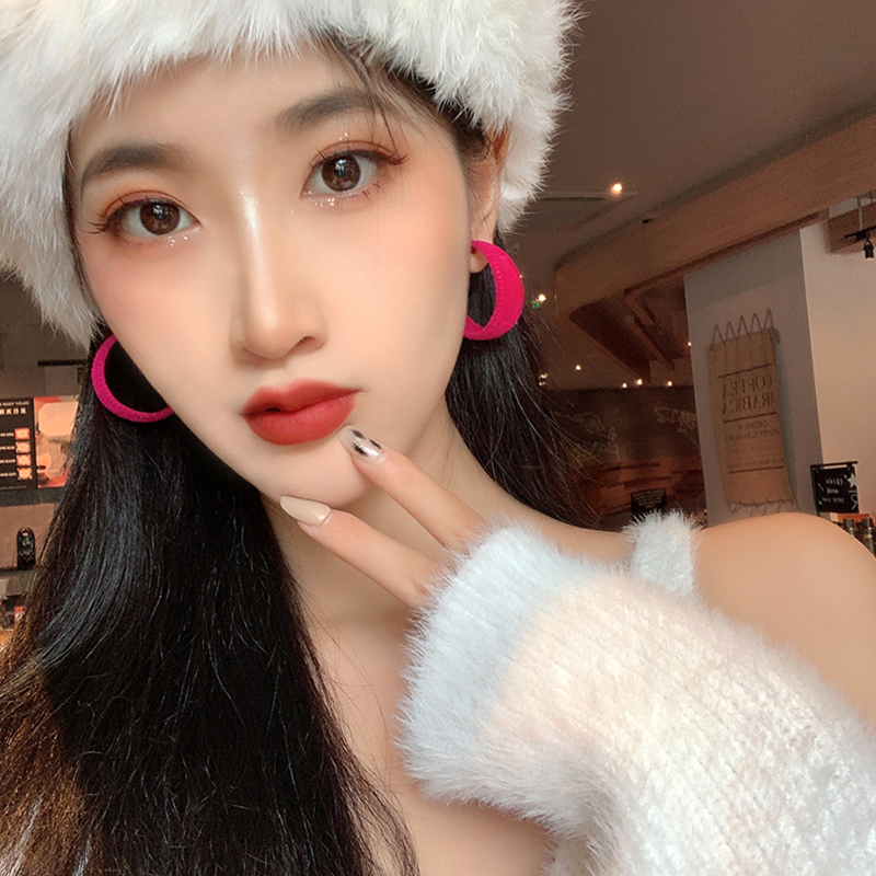 South Korea Circle Earrings Earrings Woman 2022 New Tide Autumn Winter Plush Blue Temperament Fashion Famous and Elegant Atmosphere
