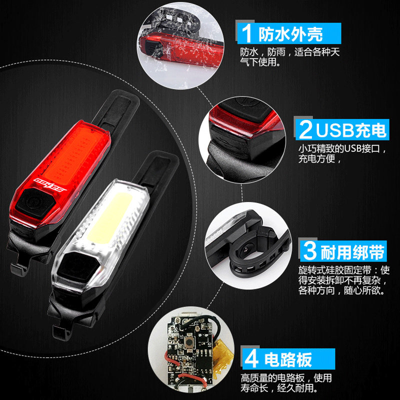 SAHOO bicycle tail light waterproof safety mountaineer taillight USB charging road car night ride LED warning light