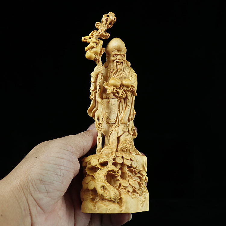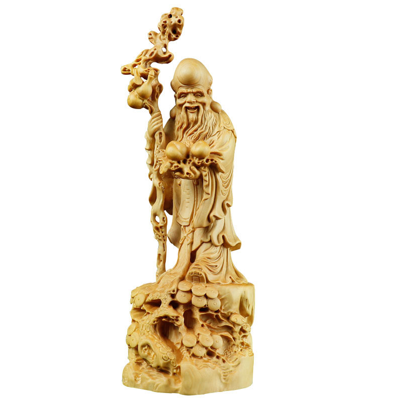 Yellow Poplar Wood Carved Solid Wood Engraving Handicrafts Congratulations Sushi Feng Shui Living-room Public Swing Piece Gift Old Sushi