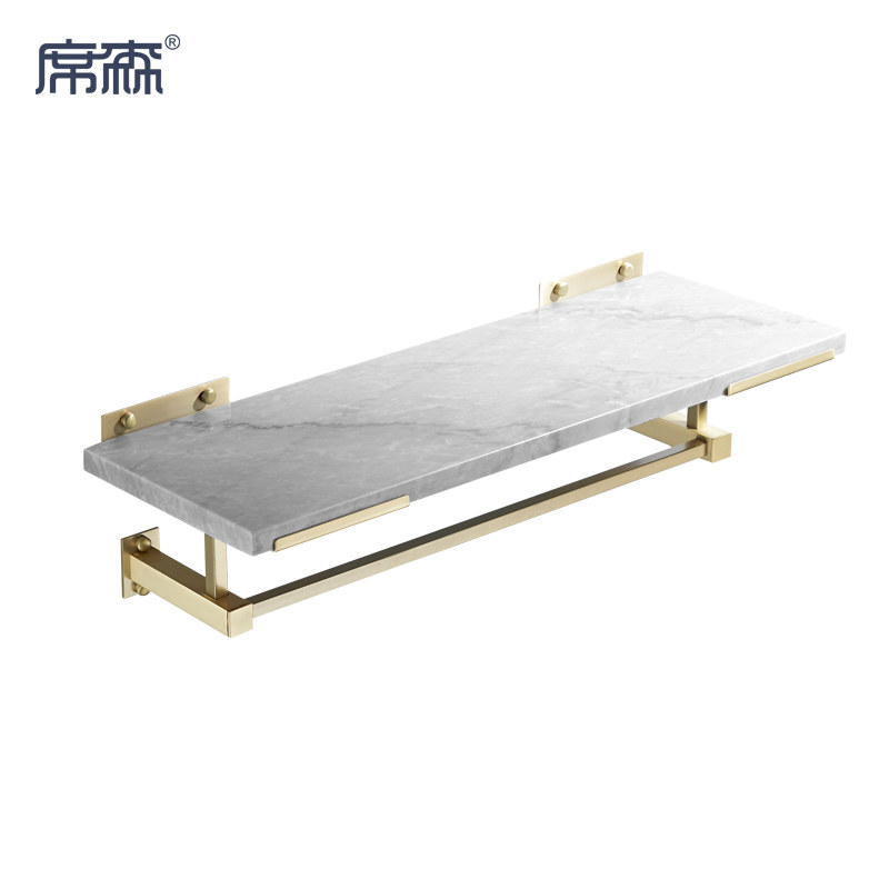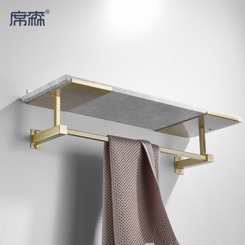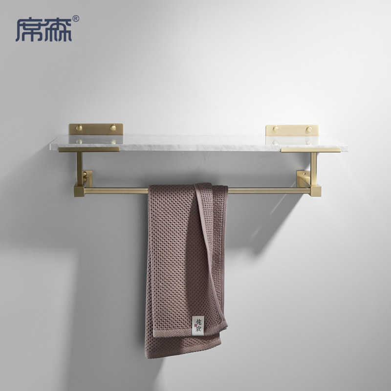 ins senior brass color bath towel rack natural marble shelve Nordic designer partition wall hanging