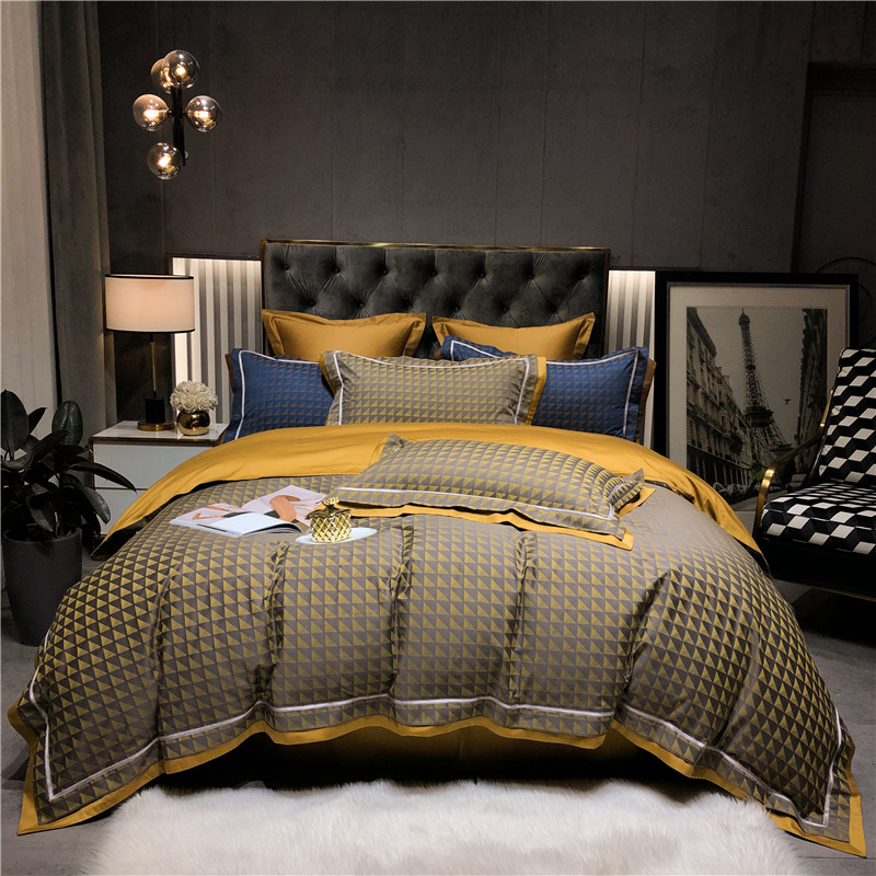 Eurostyle big cards Wind 140 horse cotton jacquard four pieces long suede cotton rhomboid Quilt Cover All-cotton Bed supplies