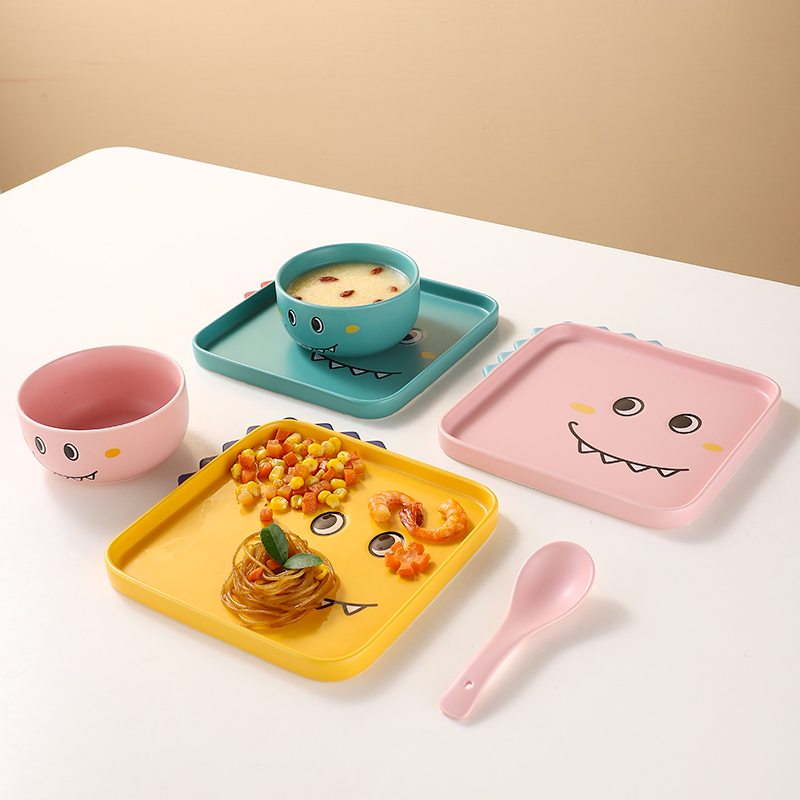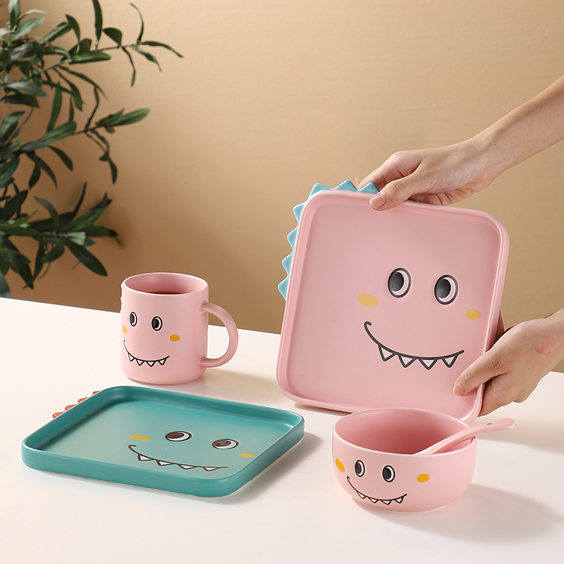 Children Cutlery Bowls Spoon Cups Home Day Style Cute Cartoon Dishes Combined Baby Creativity Four Sets Fashion Suits
