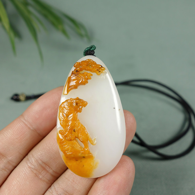 Xinjiang and Tian Yugoat Grease Jade Tiger Tiger Raw Wei Pendant Natural Playfulness of the Mountain Tiger Master Wei has Feng 27 7g