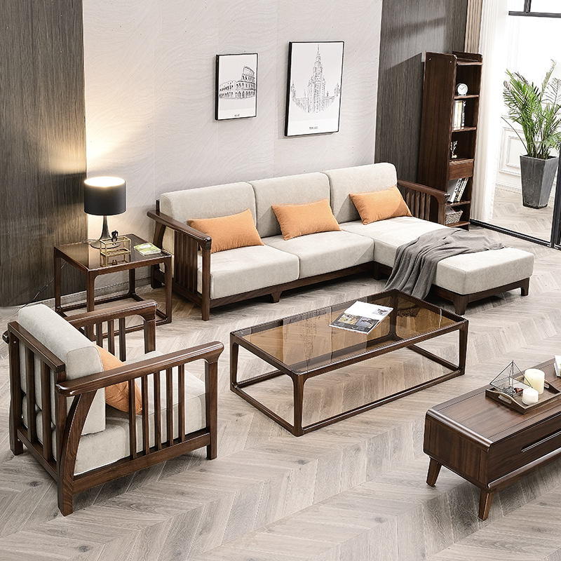 Black Walnuts Wood Full Solid Wood Sofas PRINCESS CORNER COMBINATION MODERN MINIMALIST NORDIC FABRIC SMALL FAMILY HOME INNATE