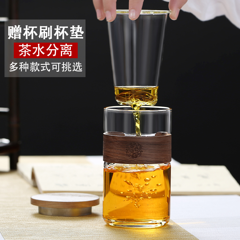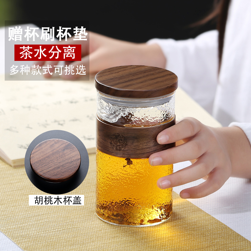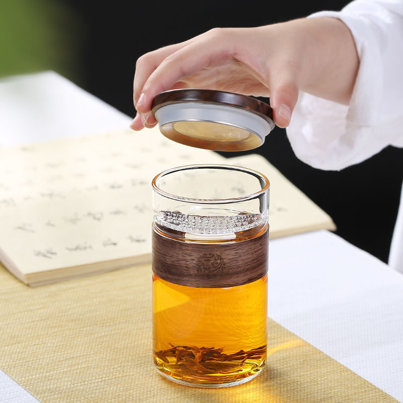 Japanese tea cup Tea water separation High temperature glass crescent cup Filter with lid Office household hand cup