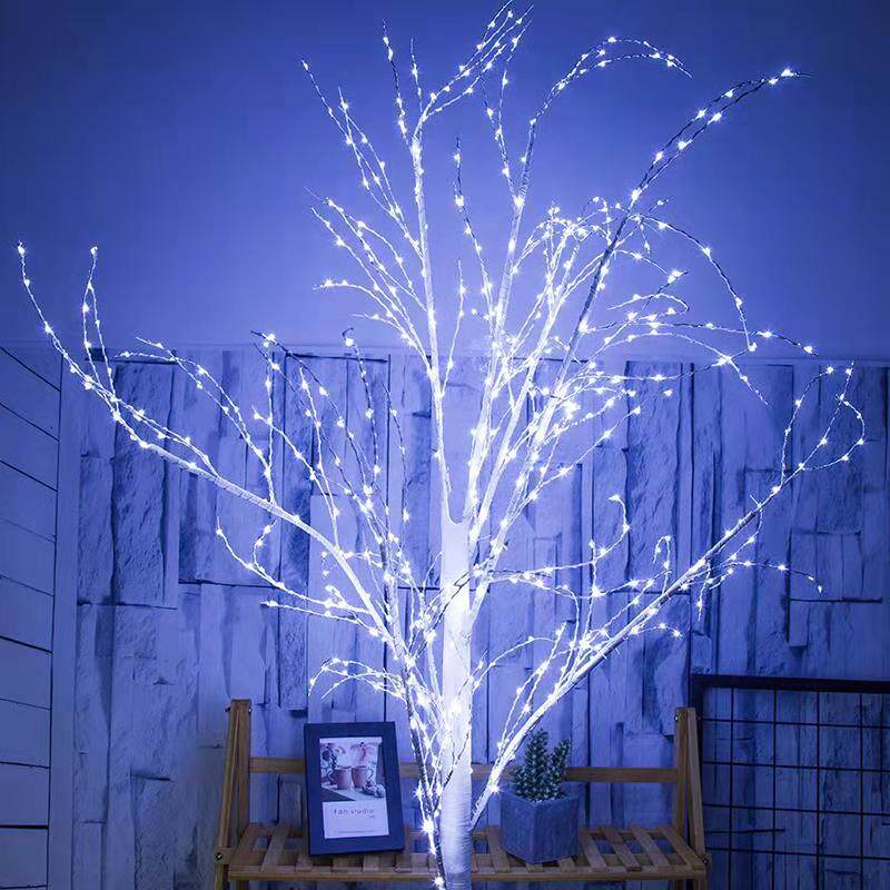 Christmas holiday Decorative Props windows arranged with a full Star warm light luminous tree emulated white birch lamp ins