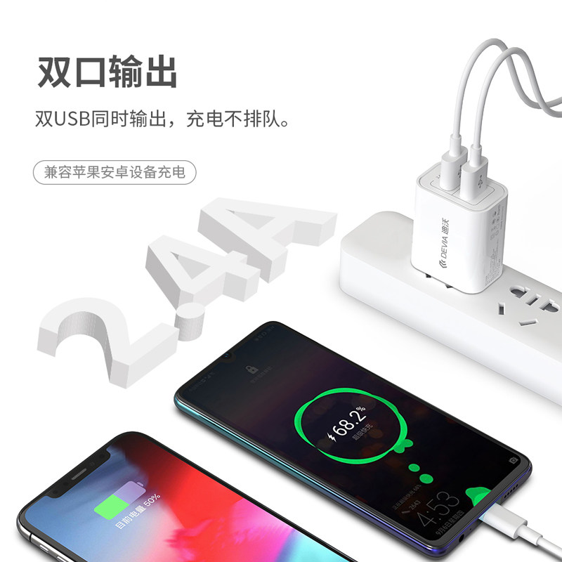 Divo DEVIA Star Speed Dual USB Mobile Phone Charger 5V2 4A Fast Charging Head for Hand Headset PAD Tablet