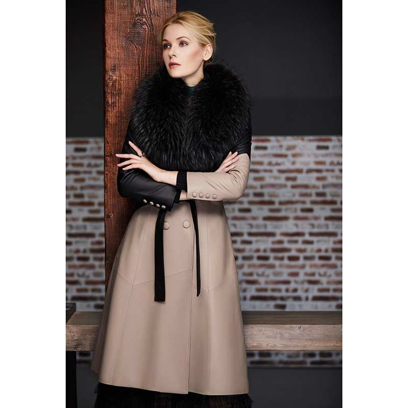 U N Q luxury large - skinned large - tied hair - collar body long - coloured sheep fur skin coat feather feather woman