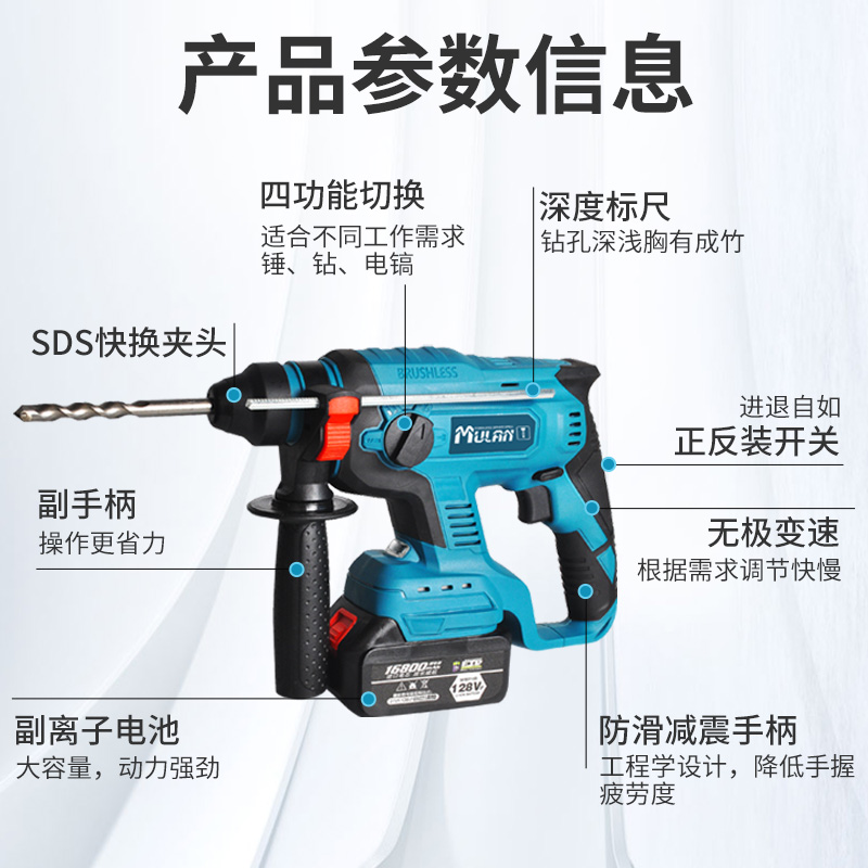 Shepherd's rechargeable electric hammer drill brushless light lithium battery electric pick high-power impact drill multifunctional electric hammer concrete