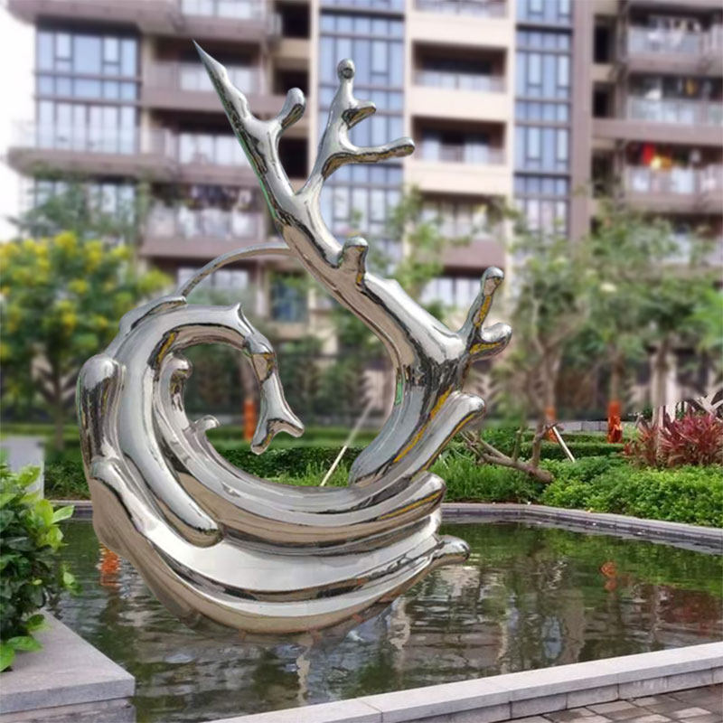 Stainless Steel Forged Wave Flower Sculpture Custom Abstract Mirror Metal Outdoor Landscape Sales Floor Garden Pool Pendulum-Taobao