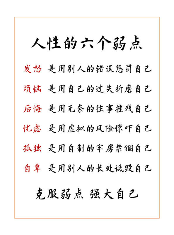 Six weaknesses of human nature handwriting font calligraphy works desk photo frame swing piece office motivatio calligraphy and painting swing table