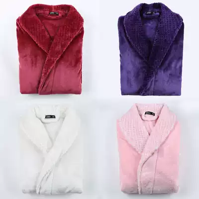 Japanese coral velvet couple nightgown female wedding home service red thickened pajamas Men's autumn and winter flannel bathrobe