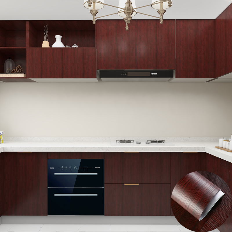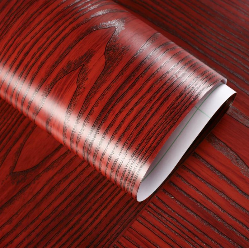 Red wood grain wallpaper self-adhesive renovation sticker wallpaper wood grain sticker waterproof furniture cabinet book desktop wooden door Chinese style