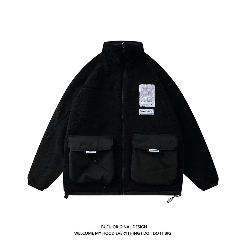 Hundreds of millions of young people's national tide lamb wool cotton jacket men's loose oversize function wear lamb wool cotton jacket on both sides