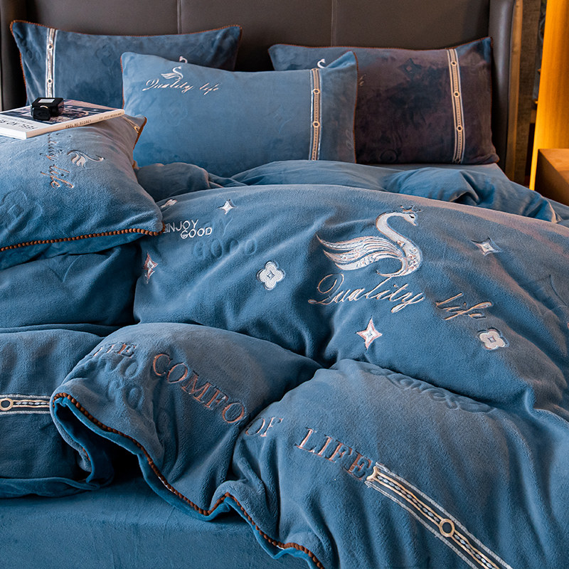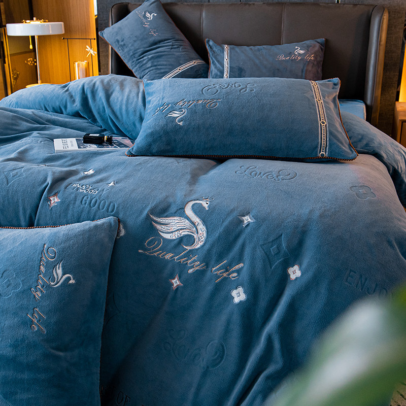 Milk velvet four-piece set coral velvet winter velvet thickened 1 8m meter bed single duvet cover bedding flannel thick