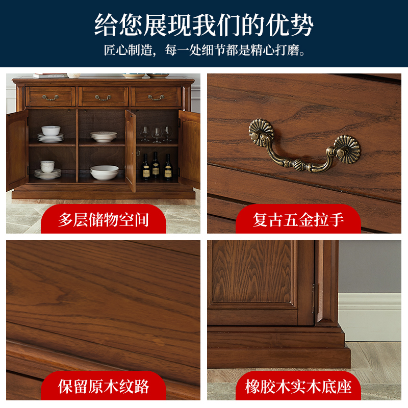 Li special dining cabinet solid wood American retro multifunctional storage porch cabinet living room storage tea dish cabinet