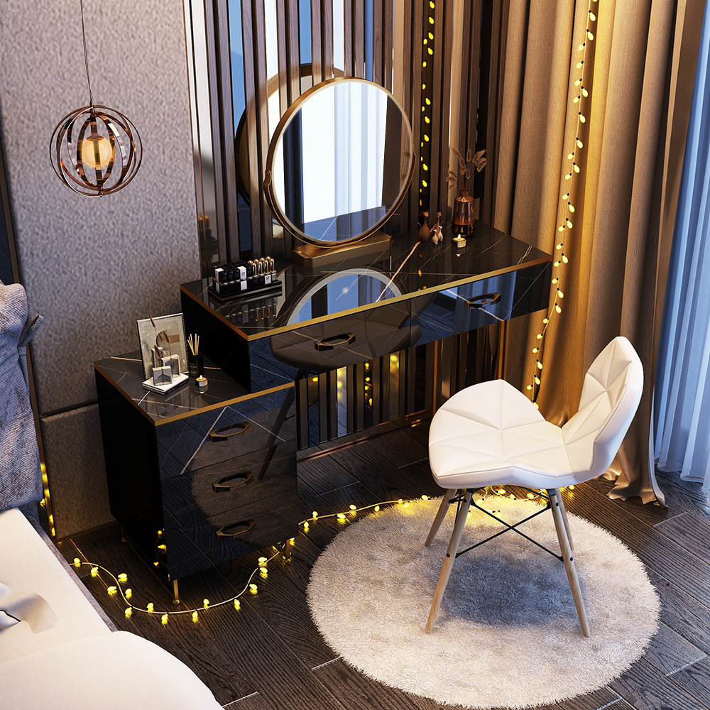 Light Extravagant Nordic Makeup Desk Bedroom Modern Minima Small Household Type Tennis Red Makeup Desk Multifunction Storage Cabinet Integrated