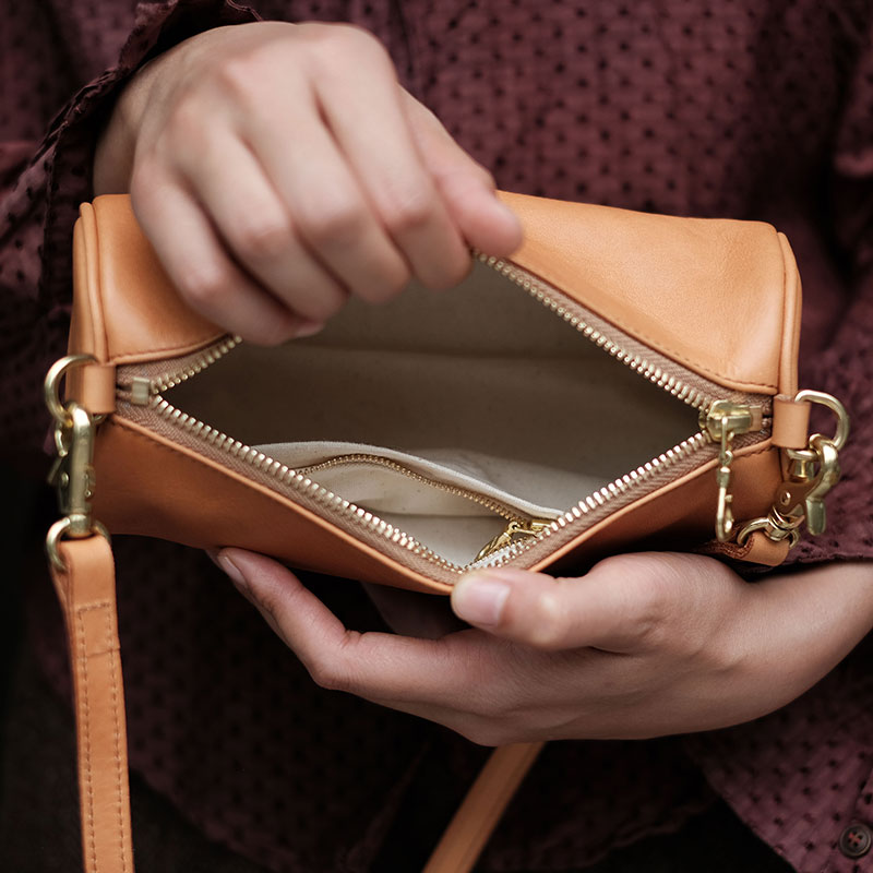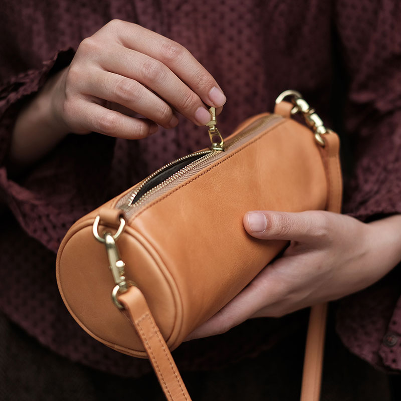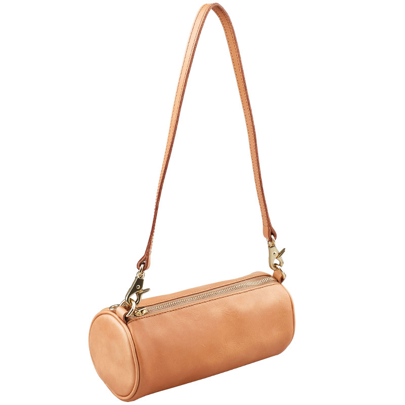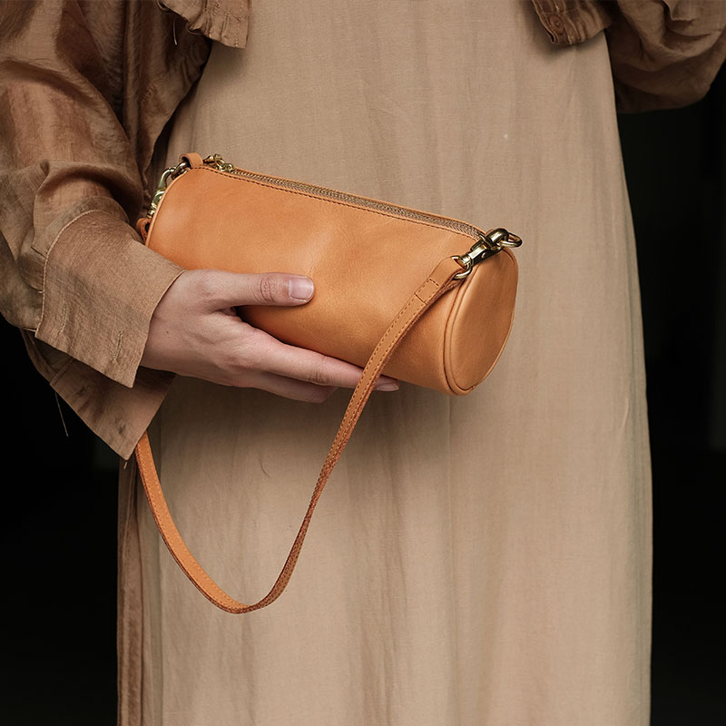 KONGLONGMOGU full leather handmade vegetable tanned cowhide mobile phone bag ladies zipper fashion cylinder mini armpit bag