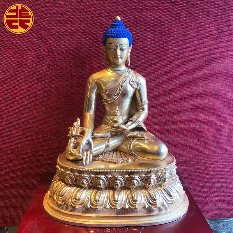 Jimei Red Lotus 1-foot Three-body Buddha Sakyamuni Pharmacist Ami Successfully Achieved Gold-plated High-end Customization